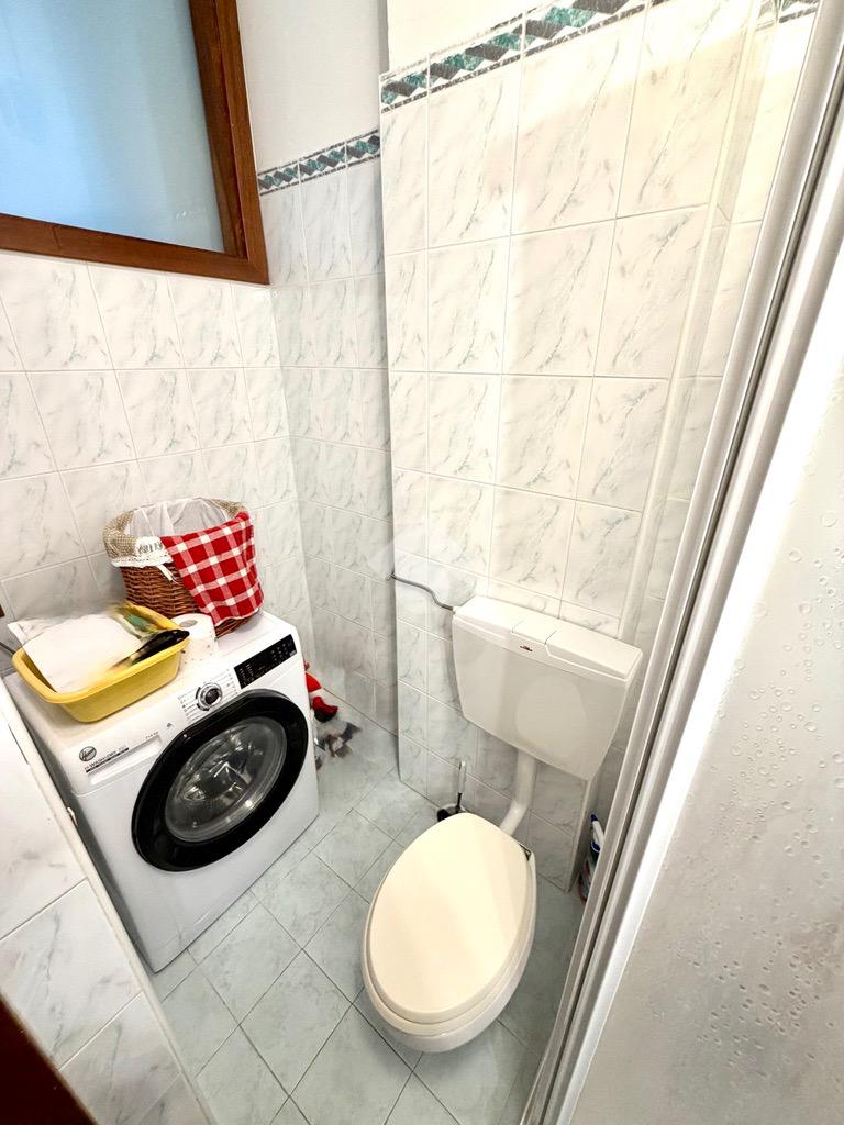 La soluzione si apre su un ampio ingresso che conduce al soggiorno luminoso con terrazzo, ideale per momenti di relax all’aria aperta. La cucina separata, funzionale e ben organizzata, dispone anch’essa di pratico poggiolo. Completano la zona giorno un primo bagno con doccia.